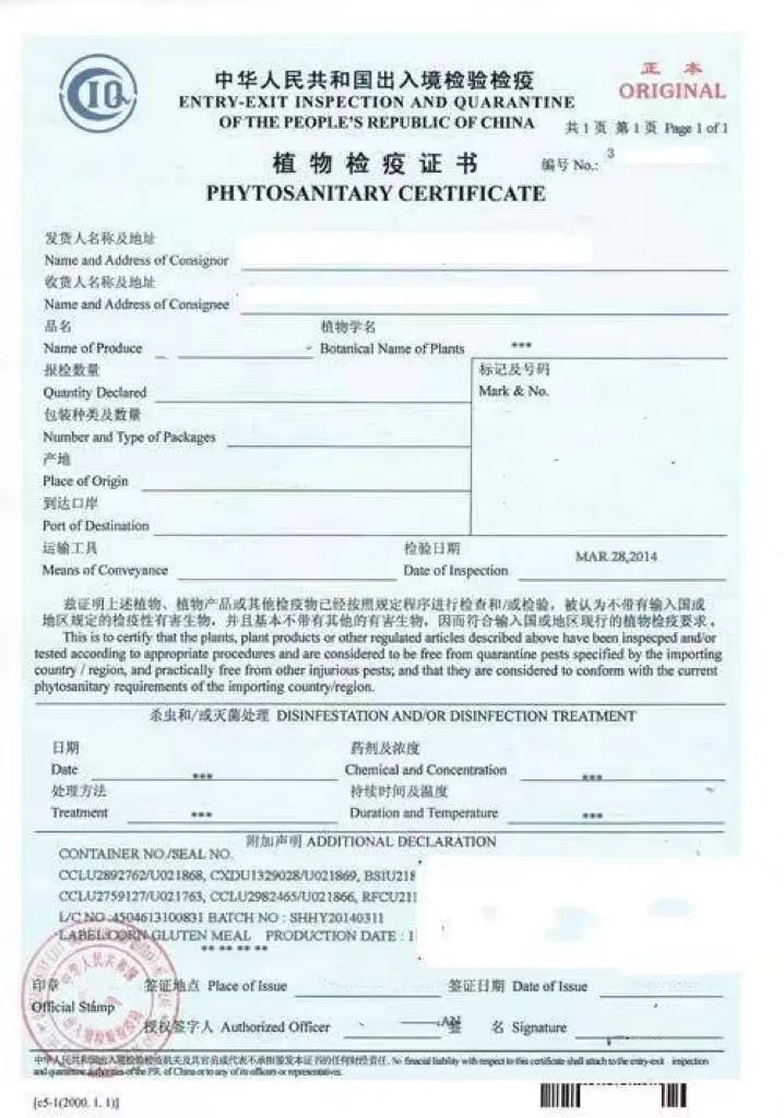 【該批貨物來自注冊加工企業(yè)(注冊號***),符合盧旺達甜葉菊輸華植物檢疫要求議定書要求”】。經(jīng)熏蒸處理的,還應(yīng)在植物檢疫證書中注明熏蒸處理日期、溫度、濃度和持續(xù)時間等處理指標。