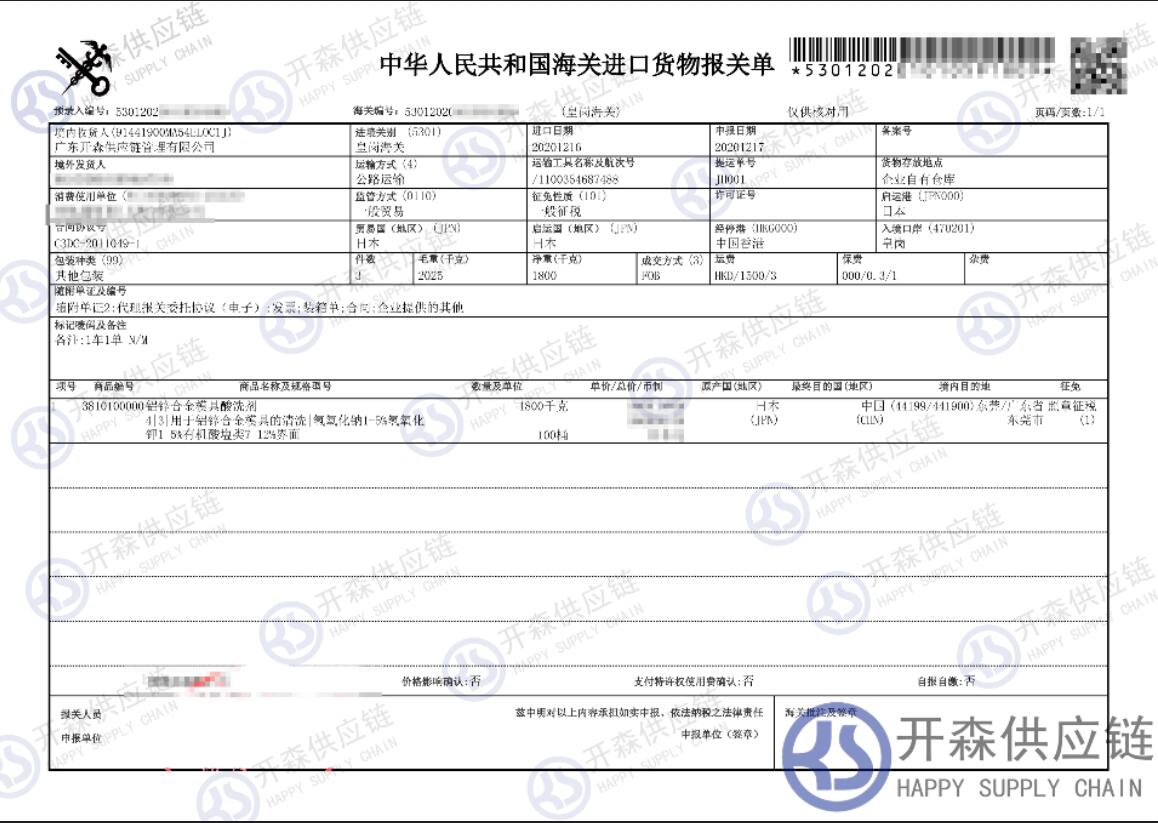 【本文結(jié)語】 上述就是深圳港日本清潔劑進口報關(guān)清關(guān)代理服務(wù)【經(jīng)典案例】的全部內(nèi)容,希望能對您有所幫助,如有化工品進口報關(guān)上任何疑問及問題可隨時在線聯(lián)系我們或撥打 18002611553,開森供應(yīng)鏈擁有豐富的化工品進口報關(guān)操作經(jīng)驗及案例,10余年進口經(jīng)驗為您所用,各類進口疑難都能為您一一解答及協(xié)助快速處理解決!