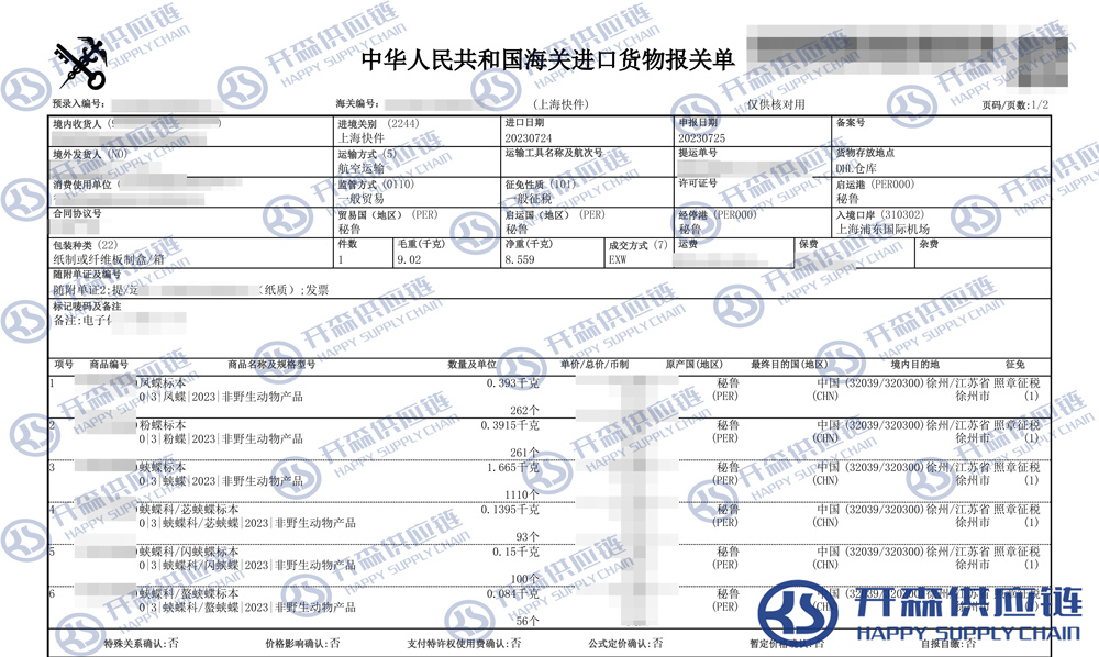 一、秘魯動(dòng)物標(biāo)本進(jìn)口報(bào)關(guān)代理案例詳情