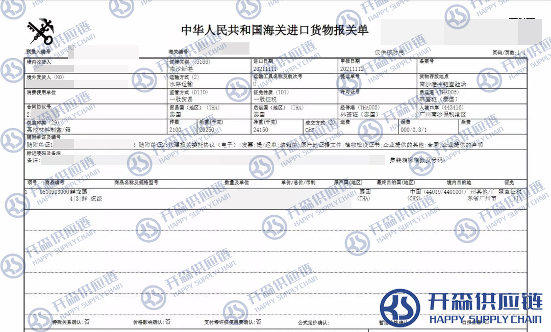 一、泰國鮮龍眼進(jìn)口報(bào)關(guān)代理案例詳情