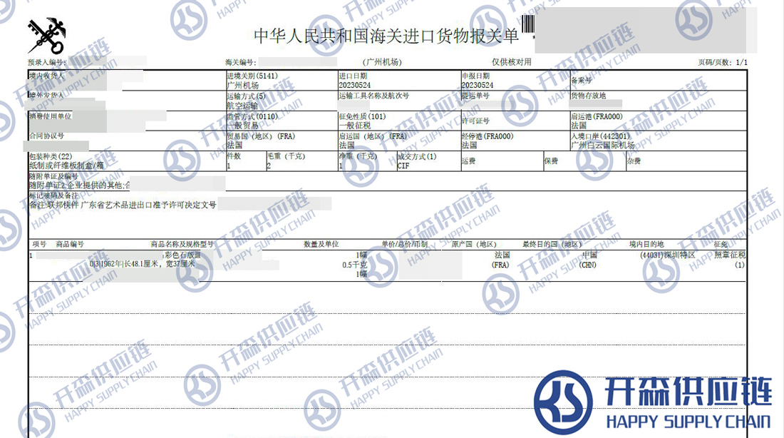 一、法國彩色石版畫進(jìn)口報(bào)關(guān)代理案例詳情