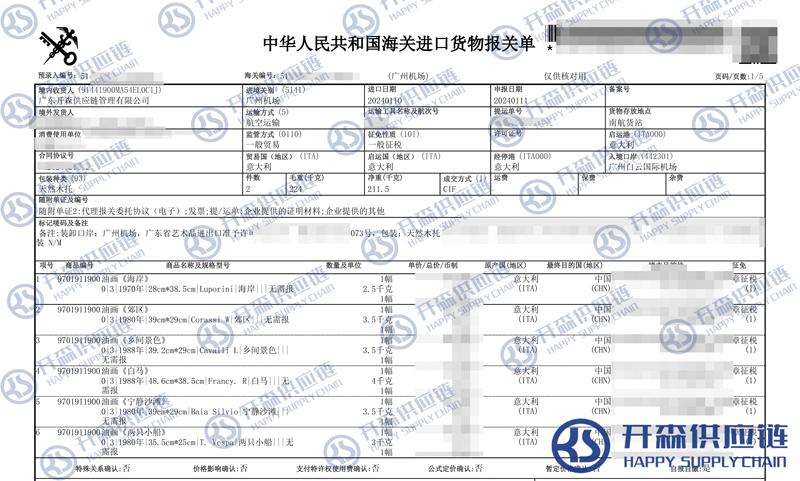 一、廣州機(jī)場(chǎng)意大利油畫(huà)進(jìn)口報(bào)關(guān)代理案例詳情